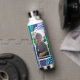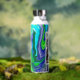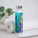 Digitale Flüssigkeitskunst in blau, weiß und kalk-grün Wasser oder Kaffeflasche. Personalisieren Sie es, indem Sie Ihr Foto und Ihren Namen hinzufügen.