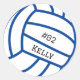 Blauer Volleyballaufkleber mit Name und Zahlenpersonalisierung.