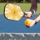 Boho 70er Jahre Stil abstrakte gelbe goldene Sonne und Rochen Retro-Stil Pickle Ball Paddle, mit Retro geblüht Typografie. Stil der 60er und 70er Jahre. Füge Deinen Namen hinzu.