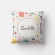 Personalisierter Boho Watercolor Design Name Girl Throw Kissen Boho Wasserfarbe Regenbogen mit Herzen werfen Kissen mit einer whimsical Skript-Schrift für ein Baby Kinderzimmer oder Kleinkind Kinderzimmer. Pastellrosa Farben und Herzen.