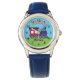 Kinderuhr aus Edelstahl mit blauem Lederarmband