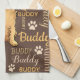 Braun Personalisiertes Kissen für Ihren Hund. Anpassbar mit dem Namen Ihres Hundes. Wenn Sie den Namen Buddy in den Namen Ihres Haustieres ändern, werden alle typografischen Namen gleichzeitig geändert. Word Cloud Art Typografie. Verschiedene Schriftart-Typen und Stile in braunen und beigen Pfoten drucken, die mit einem rustikalen Stallstil-Zuhause großartig aussehen. Modernes Design. Alles ist anpassbar. Sie können die braune Hintergrundfarbe ändern, den Stil und die Größe des Schriftartes sowie die Farbe ändern. Der niedliche, braune Welpenhund ist flauschig/wellig mit einer Art Bart und sieht aus wie ein Goldendoodle, Groodle, Labradoodle, Retriever, Terrier, Poodle. Cockapoo, Cavapoo, Maltipoo, Havanna, Schnoodle, Shih Tzu, Lhasa Apso, Yorkshire Terrier, Sheepdog, Schnauzer, Bartded Collie und vieles mehr.