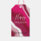 Personalisieren Sie diese einzigartige festliche Geschenkmarke mit Ihrem Familien- oder Firmennamen. Passen Sie den Text auf dem Namensschild auf Wunsch mit Ihren eigenen Worten an. Ich kreierte dieses einmalige rot-rosa-wirbelige Design auf weißem Hintergrund. Das lustige Cane-Muster wird mit Farben aus einem Foto einer roten Pony aus meiner Originalfotografie erstellt. Die zeitgenössischen rot-weißen Streifen werden Ihre Urlaubsgeschenke und -pakete interessant und farbenfroh machen. Die moderne elegante Typografie sagt "Happy Holidays".