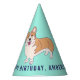 Ob es ein Party für Ihren Corgi ist oder ein Party für Ihren Lieblings-Corgi-Besitzer feiern stilvoll mit diesen personalisierten Papier-Party-Hüten. Dieses Party bietet eine Illustration eines Pembroke Welsh Corgi Hundes und eine eigene, individuelle Nachricht.
