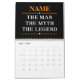 Personalisiert den Mann, den Mythos, die Legende Kalender