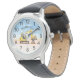 Kinder Edelstahluhr mit schwarzem Lederarmband
