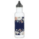 Personalisieren Sie diese hübsche Getränkflasche mit Ihrem Initial. Das Design besticht durch hübsche, moderne Blume und ein belaubtes Ambiente auf einem marinen Hintergrund.