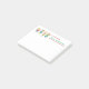 Personalisierte Post-Itanmerkungen für Lehrer. Ausrüstungsbeschreibungen '' einer Anmerkung von den Lehrern Name oder Familienname im roten und grünen Schriftart und eine Ikone von den glücklichen Studenten in den Pastellfarben.
