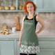 Fügen Sie Ihren Namen in das Bib dieser hübschen grünen Schürze mit einer schönen keltischen Vogelkachel-Grenze für ein tolles Geschenk für Ihre irisch inspirierte Küche oder einfach St. Patrick's Day! Diese Schürze macht auch ein schönes Brautparty, eine Gastgeberin oder ein Hauswärmereid.