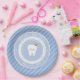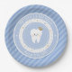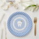 Personalisierte Dekoration aus dem First Tooth Party. Baby blaue Papiertüte mit niedlichem Zahn, bearbeitbarer Name und Datum. Besuchen Sie den Shop, um alle Kollektionen von First Tooth zu sehen.