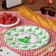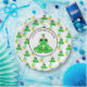 Teller zum Geburtstag. Niedlicher Frosch auf einem Lilienpolster mit Ballons personalisierte Geburtstagsfeier Teller.