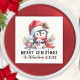 Kreieren Sie einzigartige personalisierte Weihnachtsservietten mit einem festlichen Design, das "Frohe Weihnachten" sagt und einen niedlichen Pinguin in roter Weihnachtsmannmütze auf weißem Hintergrund zeigt. Die Vorlage macht es einfach, Ihren Familiennamen in Skript-Schriftart und jedes Jahr einzugeben.