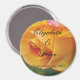 Fun Braut Hochzeitsmagnet mit einem rot gelb rosa Hintergrund mit Ihren Namen und Datum.