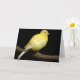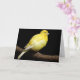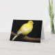 Gelbe Kanarische Kanareninche auf einem Zweig mit schwarzem Hintergrund, innerhalb der Karte links leer für Ihre persönliche Nachricht