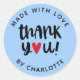 Ein personalisierter Aufkleber "made with Liebe, Dankeschön" mit hellblauem Hintergrund. Machen Sie es Ihren, indem Sie Ihren eigenen Namen hinzufügen. Eine hübsche Touch, um Ihren Kunden zu danken, dass sie von Ihrem kleinen Unternehmen gekauft haben. Es gibt eine Vielzahl von Farben. Entworfen für Sie von BlackBerry Boulevard.