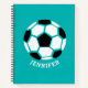 Personalisiert Geometrisches Fußball Ball Kids Sports Journal. Viele Papierstile. Schwarz-Weiß-geometrischer Fußball auf aquamarinem grünem Hintergrund. Personalisieren Sie sich mit dem Namen unter dem Schriftart. www.SamAnnDesigns.com