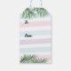 Einzigartiges Geschenketikett, das mit dem Namen des Empfängers angepasst werden kann. Das Geschenk-Tag hat pastellfarbene Linien und Palmenzweige mit fett bedrucktem Namen auf der Vorderseite des Tags.