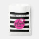Fügen Sie Ihre Lieblingsgötchen zu dieser personalisierten, eleganten, schwarz-weiß gestreiften Gaumentasche für Gäste oder Freunde hinzu. Ideal für Geburtstage, Brautpartys oder Mädchenabende.