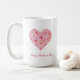 Passen Sie meine handgemalte Aquarell-Tasse für ein süßes Muttertagsgeschenk an. Es machte mir Spaß, diese blütenrosa und pfirsichfarbenen Rose in Herzform zu malen. Sie sind nicht perfekt, aber sie werden geliebt, genau wie wir. Einfache, minimalistische Schrift sagt: "Glücklicher Muttertag". Fügen Sie Ihrem Mama den Namen hinzu, um diese niedliche rosa, schicke Typografie zu personalisieren. Sie können auch eine persönliche Nachricht hinzufügen, indem Sie den Text anpassen, der sagt: "Wir Liebe Sie Mama" Ich hoffe, Sie genießen diese einfache, moderne, trendige Mutter-Tag-Tasse. Teilen Sie diese Tasse mit Ihrer Mutter, Ihrer Stiefmutter, Ihrer Großmutter oder Ihrer Mutter für ein personalisiertes Muttertagsgeschenk. Dieses niedliche originale Aquarelldesign wird jeden zum Lächeln bringen.