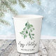 Diese festlichen Papiertassen sind mit Aquarellmalerei geschmückt und sagen Happy Holidays in stilvoller Schrift Typografie. Einfach anpassbar. Original Wasserfarbe © Michele Davies.