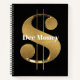 Ein mutiges, goldenes 3D-Dollarzeichen macht dies zu einem großartigen Notizbuch für all Ihre Geldgedanken, -noten und -gedanken. Personalisieren Sie es mit Ihrem Namen oder Ihrer Firma.