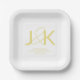 Personalisierte Hochzeitspapier-Teller mit modernem und klassischem Monogramm-Design. Elegante goldene Farbe. Eine tolle Möglichkeit für Hochzeiten und andere besondere Anlässe. Passen Sie die Teller mit dem gewünschten Text an. Fügen Sie Ihr Monogramm hinzu. Verwenden Sie die Vorlage, um Ihre eigenen personalisierten Hochzeitspapier-Teller zu erstellen.