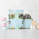 Zeigen Sie Ihre Liebe von Gorillas und Schimpansen mit diesem personalisierten Monogramm-Design auf einem sanften, grünen und blauen goldfarbenen Aquarellhintergrund! Dieses Design mit einem Gorilla und Schimpansen, die durch die Dschungelbäume schwingen, ist perfekt für alle Liebhaber wilder Tiere geeignet. Personalisieren Sie es mit Ihrem Namen und initialen für einen einzigartigen und stilvollen Look.