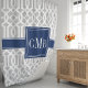 Entspannen Sie im eleganten, grau-marineblau-blauen Duschvorhang mit marokkanisch inspiriert Trellis. Das kompakte geometrische Design und das individuell anpassbare Monogramm schaffen einen einzigartigen und stilvollen Akzent für jedes Badezimmer.