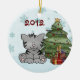 Personalisierte Niedliche Grautiger-Katze mit Weihnachtsbaum Baby's 1. Weihnachtsgeschenk Keramik Ornament