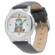 Kinder Edelstahluhr mit schwarzem Lederarmband
