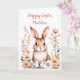 Vintages Kaninchen und Blume Aquarellkunst. Hübscher Pfirsich, Korallen, Rosa und Salbei grüner Garten von Blume. Ein süßes Osterangebot. Niedliche Kinderkarte. Inside page ist eine Farbseite. Personalisierte Osterkarte.