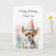 Geburtstagskarte für alle, die Hunde Lieben. Niedlicher kleiner Chihuahua in einem Geburtstagshut. Personalisieren Sie den Namen oder das Familienmitglied im personalisierenden Bereich.
