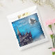 Frohe Halloween Spuk House Flying Witch. Hexe auf ihrem Broomstick, der auf Vollmondnacht über dem Spuk Haus fliegt. Vollmond strahlt hell im Sternenhimmel Halloween. Die perfekte Halloween-Liebestasche für Trick oder Behandlung. Personalisieren Sie Design mit Ihrem Namen.
