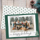 Happy Holidays Personalisiert Foto Green Holiday Card. Moderner Aquarellbaum und festliche Lichter Feiern die Jahreszeit mit dieser personalisierten Weihnachtsfotokarte mit einem modernen Aquarellbaum, geschmückt mit strahlenden Festlichtern, die von der Künstlerin Catherine Sweetman handgemalt werden. Das elegante Design verbindet stilvolle Schriftzeichen mit einer minimalistisch grünen und weißen Palette und schafft einen zeitlosen Look, der sowohl modern als auch raffiniert ist. Passen Sie die Vorderseite mit Ihrem Foto, Namen, Jahr und Urlaub an, und freuen Sie sich auf eine herzliche persönliche Touch. Die Rückseite setzt das festliche Thema mit einem koordinierenden Weihnachtsbaumdesign in Aquarellfarben und schicken Schriftzeichen fort und macht diese Karte aus allen Blickwinkeln schön. Diese moderne Aquarellkarte ist perfekt geeignet, um mit Freunden und Lieben herzliche Wünsche zu teilen. Sie verbindet Eleganz und Einfachheit zu einem unvergesslichen Erlebnis.