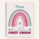 Personalisiertes Schulheft mit Regenbogen. Matching-Elemente verfügbar.