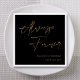 Steigen Sie mit unseren exquisiten Hochzeitsnapkins "Immer und für immer" in Ihren besonderen Tag ein. Das handgeschriebene Design zeichnet sich durch einen faszinierenden Herzvektor aus, der in einem glanzvollen goldenen Farbakzent vor einem ausgeklügelten schwarzen Hintergrund steht. Was diese Servietten wirklich besonders macht, ist die Möglichkeit der Personalisierung. Sie können Ihre Namen und Ihr Hochzeitsdatum in einem atemberaubenden goldenen Akzent hinzufügen, sodass sie eine einzigartige und unvergessliche Ergänzung zu Ihrer Feier. Diese Servietten vereinen Eleganz und Eleganz, perfekt um Ihrem Hochzeitsempfang eine Touch Luxus hinzuzufügen.