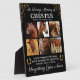 Personalisierte Pferd-Foto-Plakette mit 6 wertvollen Bildern Ihres geliebten Haustieres, Goldhufeisen & Glitzer, dem Text "in liebevoller Erinnerung an", Ihrem Pferdenamen, Geburt/Sterbedatum, und dem Beileid Zitat "Ihre Anwesenheit verpassen wir, Ihre Erinnerung, die wir schätze, lieben Sie immer, vergessen Sie nie".