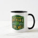 Fügen Sie Ihren Nachnamen oder anderen benutzerdefinierten Text zu diesem coolen Irish Pub Merchandise "Your Name's Irish Pub". Sehr cooles Geschenk für St. Patricks Tag, irisches Erbe oder zu jeder Jahreszeit. Grunge Vintag aussehen grüner Hintergrund mit Rahmenform und keltischem Text, Harfe und "guter Spaß und Freunde", und "Glück, Liebe und Lachen". Copyright © 2013 www.CuteComfy.com