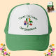 LKW-Hut, personalisiert, mit einem Kleeblatt mit je einer anderen Flagge, die die mexikanische, irische und US-amerikanische Kultur repräsentiert. Oben, die Worte DREI KULTUREN. Unten, ein IHRER NAME. Fügen Sie Ihren Namen, in grünen Buchstaben, oder den eines anderen, an der geeigneten Stelle, um einen personalisierten Hut oder ein individuelles Geschenk zu erstellen. Spaß am St. Patrick's Day, Cinco de Mayo, und am 4. Juli. Spaß auch bei Wiedersehen.