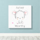 Feiern Sie mit dieser charmanten, personalisierten Mauerkunst den Wert Ihres Kindes! Diese Leinwand oder Poster mit einer süßen Maus-Illustration und der bestärkenden Bejahung "<name>ist würdig", ist ideal für die Schaffung einer fördernden und unterstützenden Umgebung in Kinderzimmern, Kinderzimmern oder Klassenzimmern. Dieses Kunstwerk ist ein Geschenk für Geburtstage, Babyduschen oder Zimmerrenovierungen und inspiriere Selbstwertgefühl und Positivität bei Kindern.