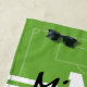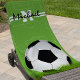 Personalisiertes Badetuch mit einem grünen Hintergrund, der in jede Farbe geändert werden kann, einem Fußballplatz, Ihren Initialen, Namen und Fußball.