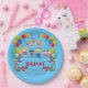 Teller mit Kindern, Ballons und Konfetti im hellblauen Hintergrund. Personalisieren Sie Ihre Kinder mit dem Namen Ihres Kindes in rot! Eine festliche Touch für eine fröhliche und unvergessliche Feier.