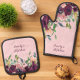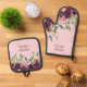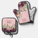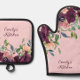 Personalisiert Kitchen Burgundy Pink Floral Ofenhandschuh & Topflappen-Set