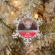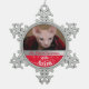 Feiern Sie das erste Weihnachtsfest Ihres Kätzchens mit dieser personalisierten Schneeflocken-Dekoration. Mit rotem Hintergrund, weißen Schneeflocken und einem silbernen Streifen dekoriert, fügen Sie einfach Ihren Katzen den Namen, das Foto und das Geburtsjahr hinzu.