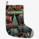 Ein schönes traditionelles Design mit Weihnachtsbäumen und Geschenken mit personalisiertem Namen, die Sie nach Ihrem Wunschnamen ändern können, sowie die Farbe, den Schriftart, die Schriftart und vieles mehr ändern. Generativer Inhalt.