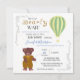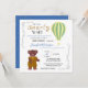 Moderne personalisierte und maßgeschneiderte "We can bearly wait" Baby Boys, Baby Dusche Einladung Kollektion, für eine niedliche, skurrile und märchenhafte Babydusche, für einen kleinen Jungen. Ein liebenswerter Vintager Teddybär aus niedlichem Terrakotta-Anzug, mit zarten goldenen Punkten, mit einem schönen, goldenen und weißen zauberhaften Heißluftballon, der im Himmel schwebt. Diese skurrile Terrakotta-Einladung ist mit zarten kleinen Imitaten, goldenen Punkten und skurrilen Weinbildern geschmückt. Vintages Teddy Bären Baby Dusche Einladung. Vintage Teddy Bär Baby Dusche Party Dekoration, Vintag Teddy Bär blaugrüne Baby Dusche Kollektion.