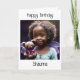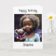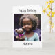 Ein niedliches afroamerikanisches Märchen, das einen Teddybär mit AI-personalisierter Geburtstagskarte hält.