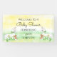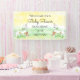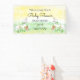 Grün und gelb geschlechtsneutraler Lama und Teddy tragen ein personalisiertes Baby Duschbanner.