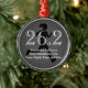 Weibliche Läufer für einen Frauenmarathon halten Sake-Ornament. Ein Marathonrennen von 40 km ist für jeden Outdoor-Laufbegeisterten eine tolle Sache! Fügen Sie Ihren Namen, Ihre Veranstaltung und Zeit oder anderen Text zu diesem personalisierten Langstreckenlauf-Keepsar, ideal für die Sportler oder Frauen Fitness Läufer. Die Silhouette eines Läufers mit 26.2 in Graustufen ist grau und weiß. Schwarzweiß mit Ihrem benutzerdefinierten Text. Ein großes Geschenk zum Gedenken an den Abschluss eines Sportmarathons für einen renommierten oder Langlauf-Joggen-Sportfan.