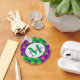 Diese farbenfrohe Schlüsselkette weist ein Muster lila, grüner und goldener Flohlissymbole auf. Der Name und das Initial können nach Ihren Wünschen angepasst werden. Die beiden Seiten des Schlüsselanhängers können unabhängig voneinander angepasst werden. (Farbcodes: Lila = 8c0daa; grün = 0dab48; Gold = f0d100)